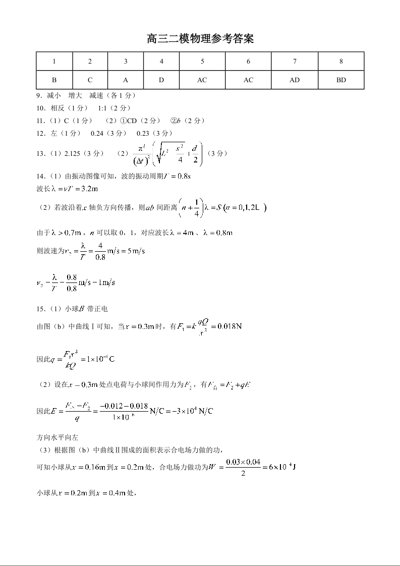 福建省师范大学附属中学2025届高三上学期二模物理答案