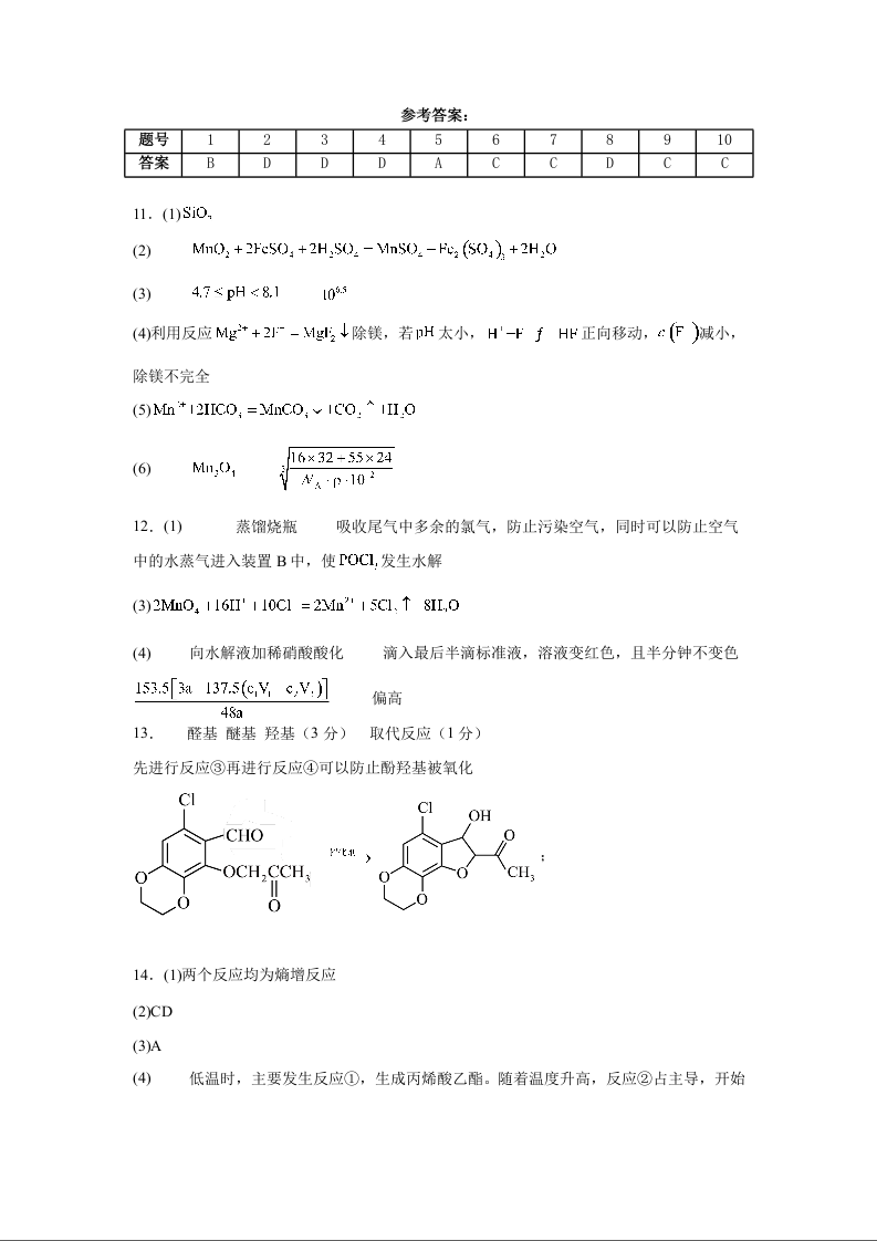 福建省师范大学附属中学2025届高三上学期二模化学答案