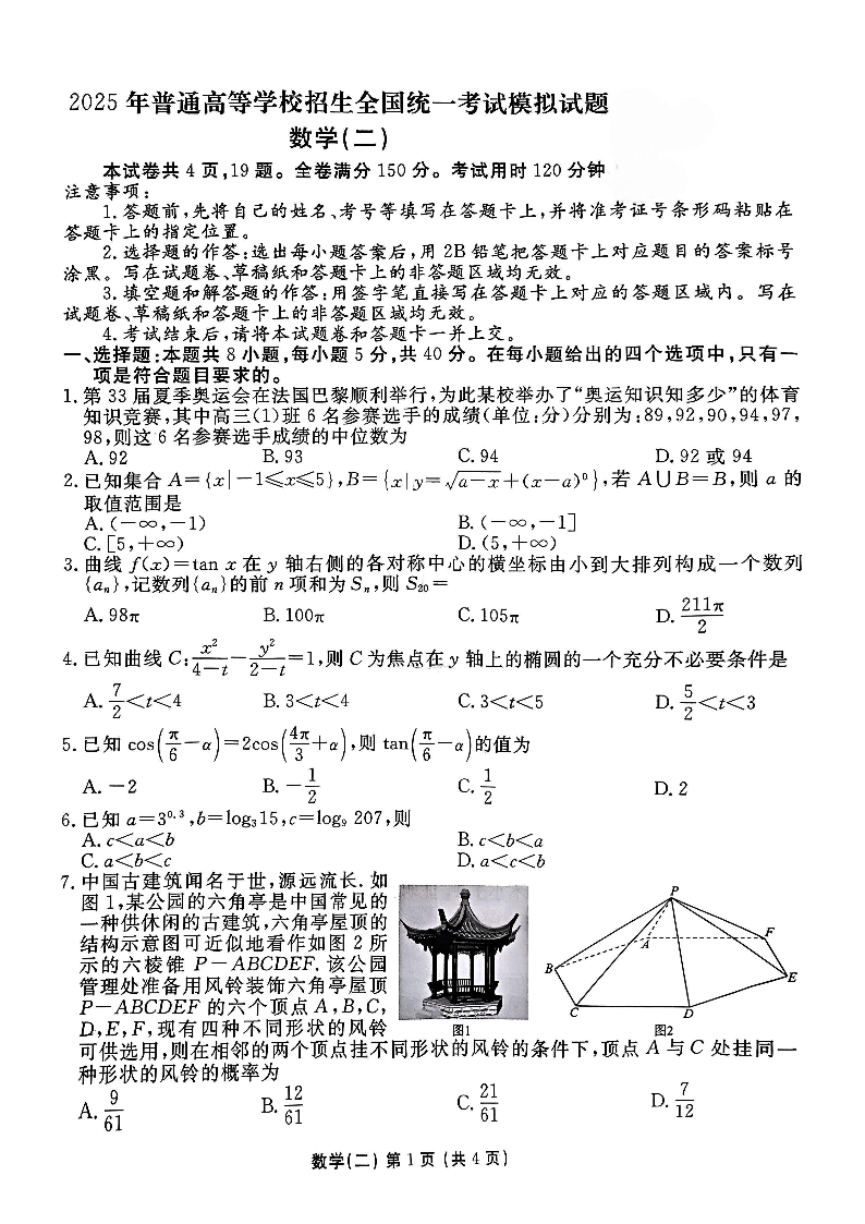河北省衡水金卷先享题2025届高三一轮复习夯基卷(二)数学