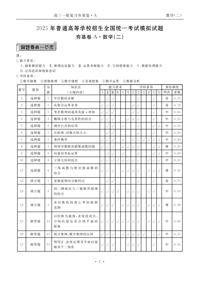 河北省衡水金卷先享题2025届高三一轮复习夯基卷(二)数学答案