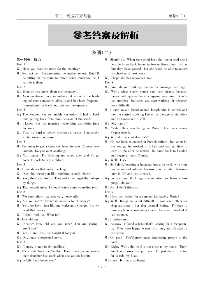 河北省衡水金卷先享题2025届高三一轮复习夯基卷(二)英语答案