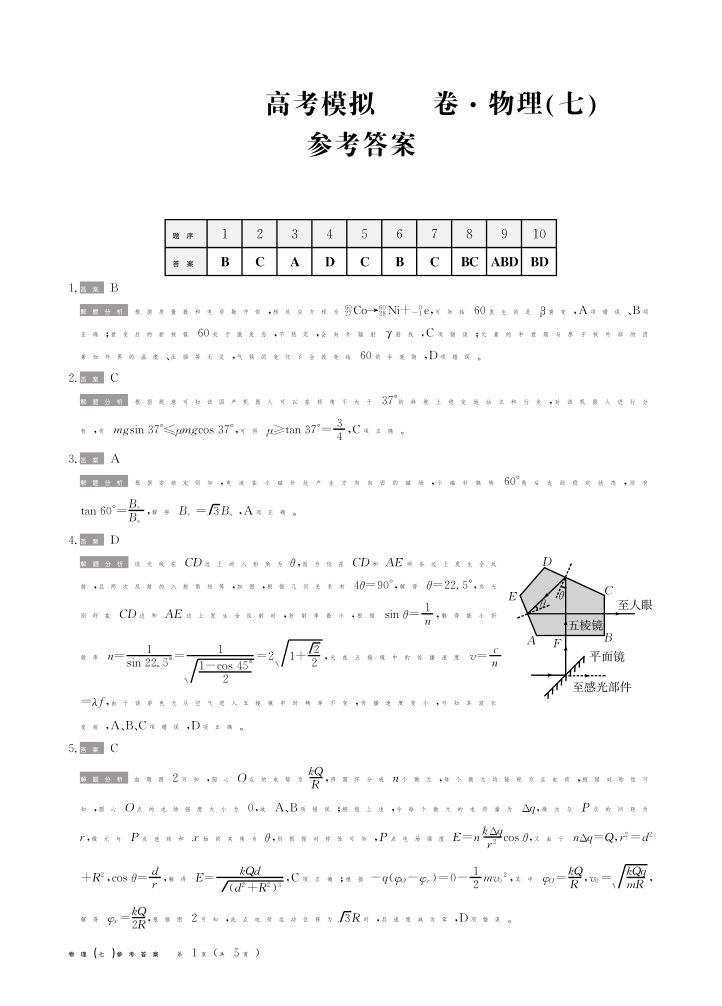 河北省衡水金卷先享题2025届高三一轮复习夯基卷(二)物理答案
