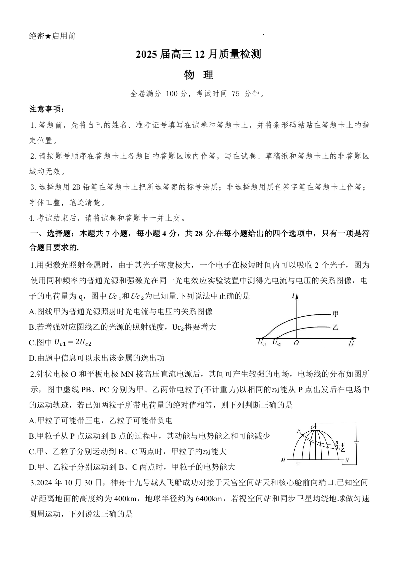 河北省金科大联考2025届高三12月质量检测物理