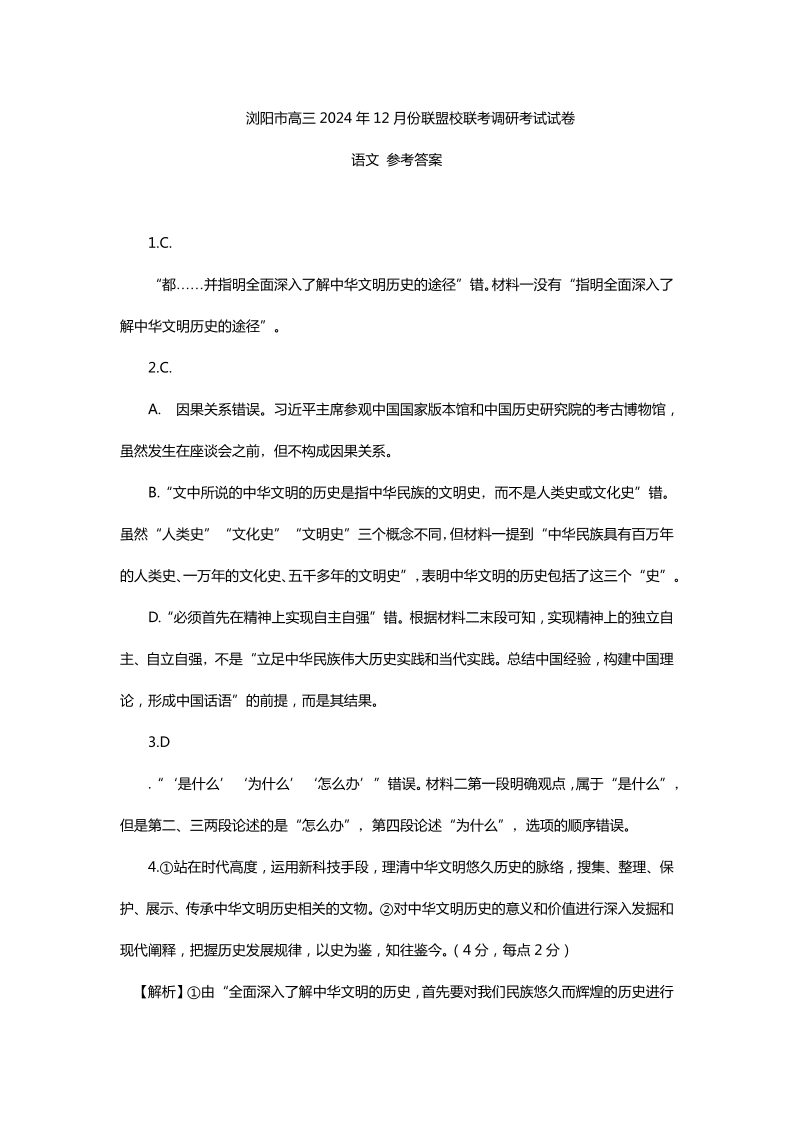 湖南省浏阳市联盟校2025届高三上学期12月联考语文答案