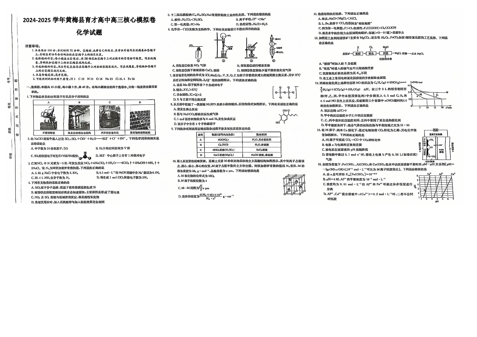 湖北省黄冈市黄梅县育才高级中学2025届高三12月核心模拟预测化学