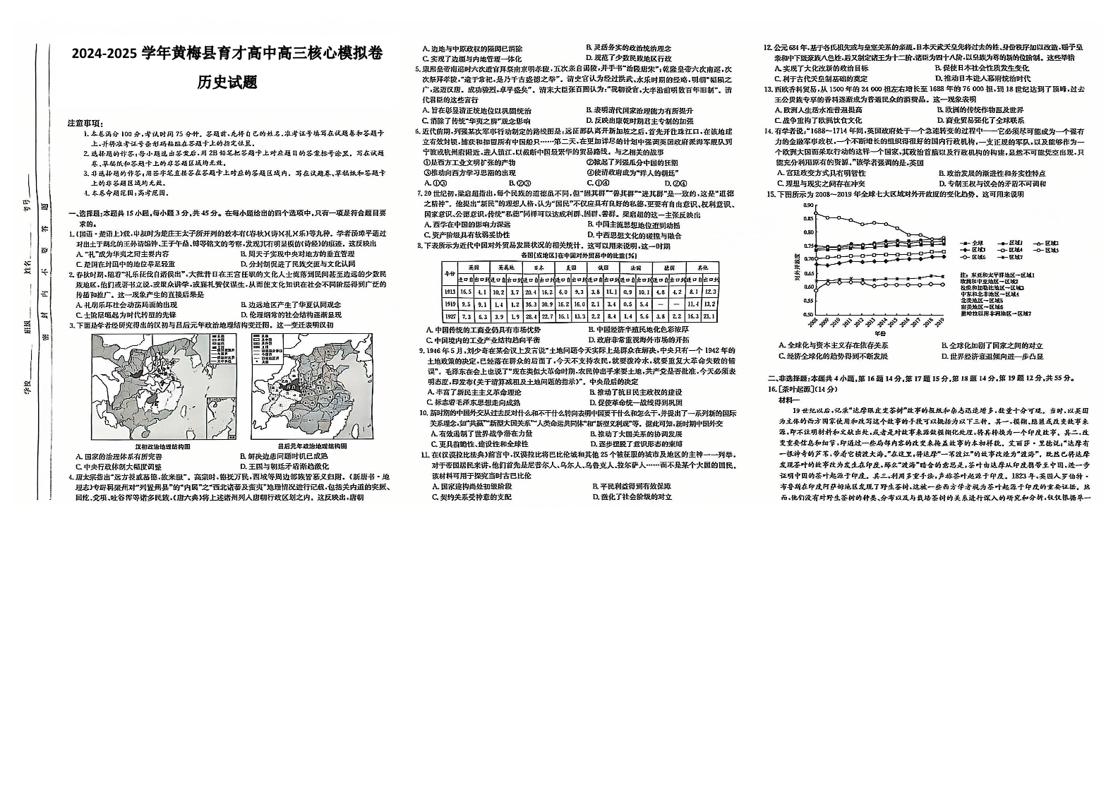 湖北省黄冈市黄梅县育才高级中学2025届高三12月核心模拟预测历史