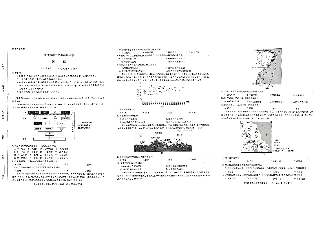 甘肃省2025届高三上学期12月高考诊断地理+答案