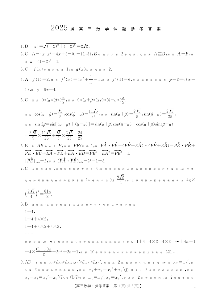 四川省区域部分高中2025届高三上学期12月联考数学答案