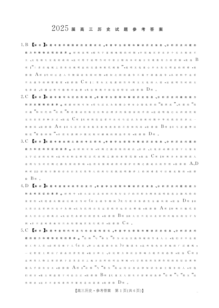 四川省区域部分高中2025届高三上学期12月联考历史答案