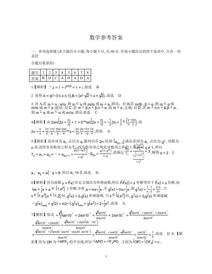 重庆市第一中学校2025届高三上学期12月月考数学答案