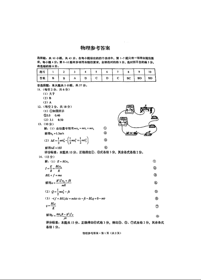 重庆市第一中学校2025届高三上学期12月月考物理答案