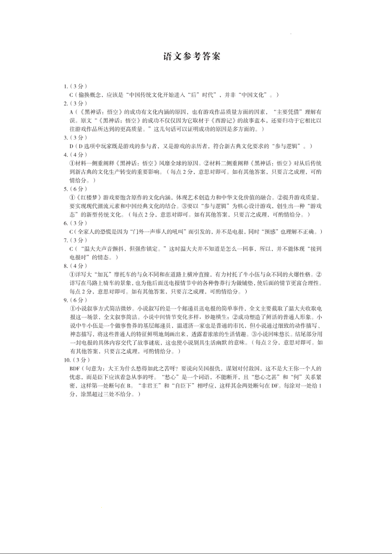安徽省A10联盟2024级高一上学期11月期中考语文答案