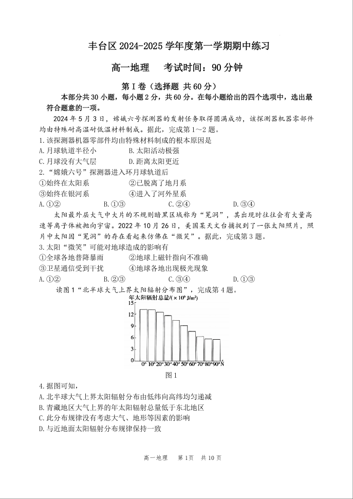 北京市丰台区2024-2025学年度第一学期期中练习地理