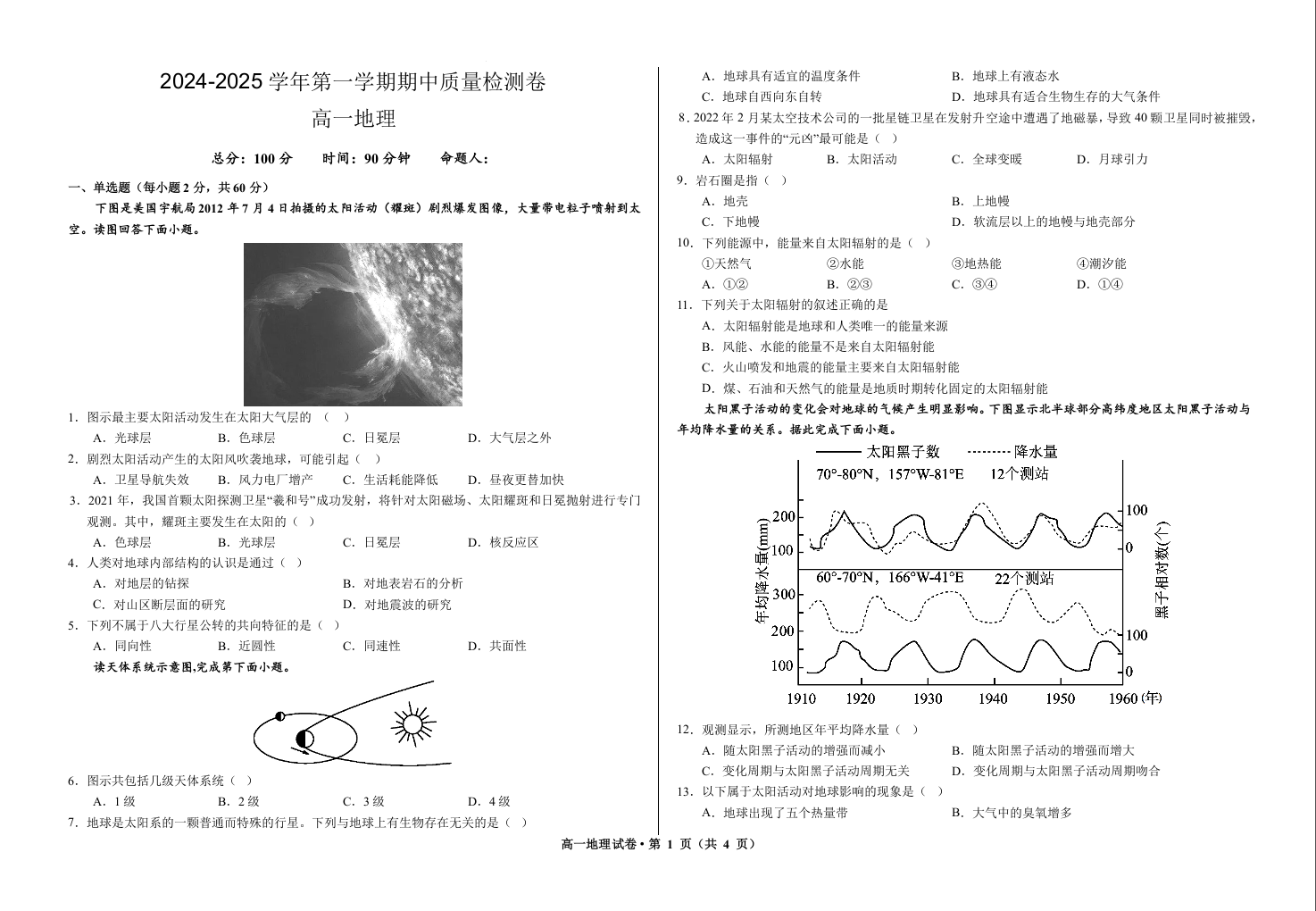 甘肃省武威市凉州区2024-2025学年第一学期期中质量检测卷地理