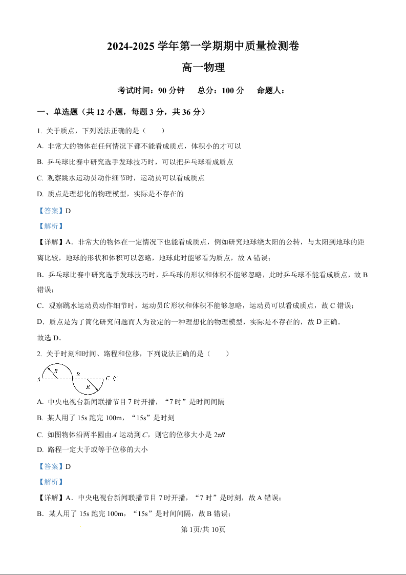 甘肃省武威市凉州区2024-2025学年第一学期期中质量检测卷物理试卷(解析版)