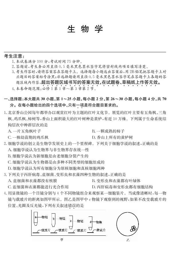 广东省深圳市部分学校2024-2025学年度高一上学期期中考试生物+答案