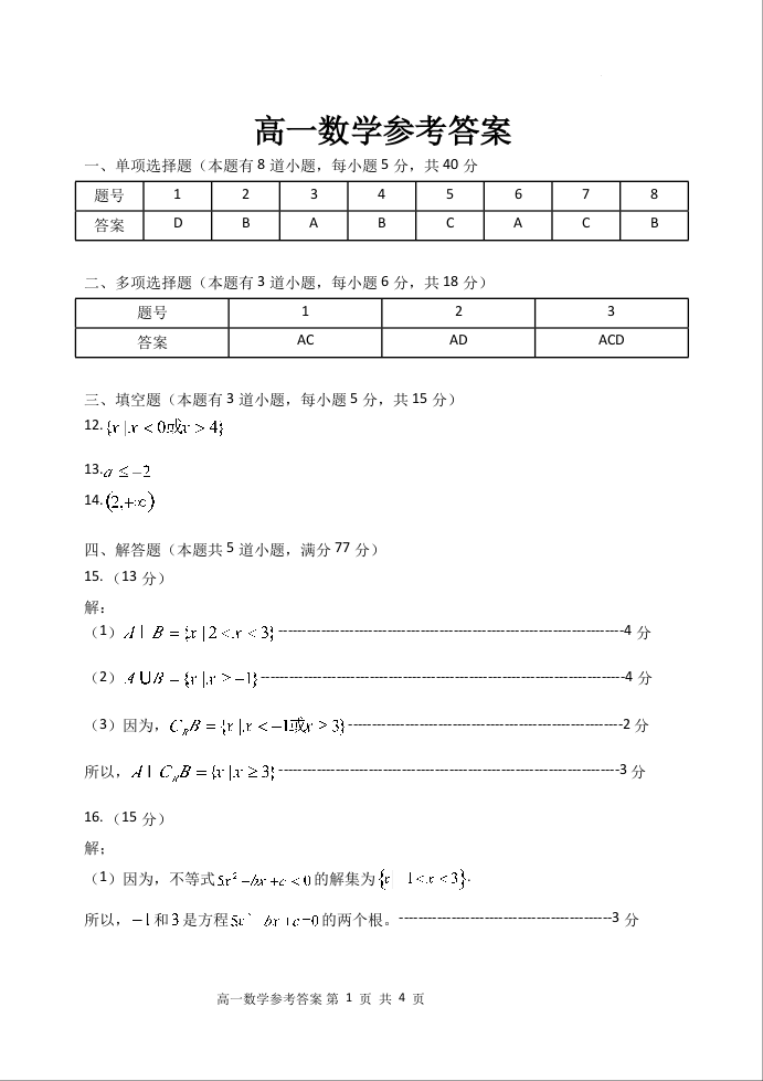 广东省珠海市金砖四校2024-2025学年度第一学期期中考试数学答案