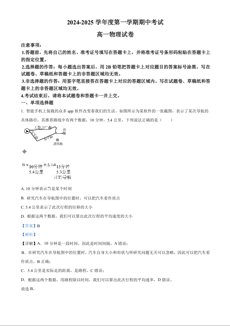 广东省珠海市金砖四校2024-2025学年度第一学期期中考试物理+答案