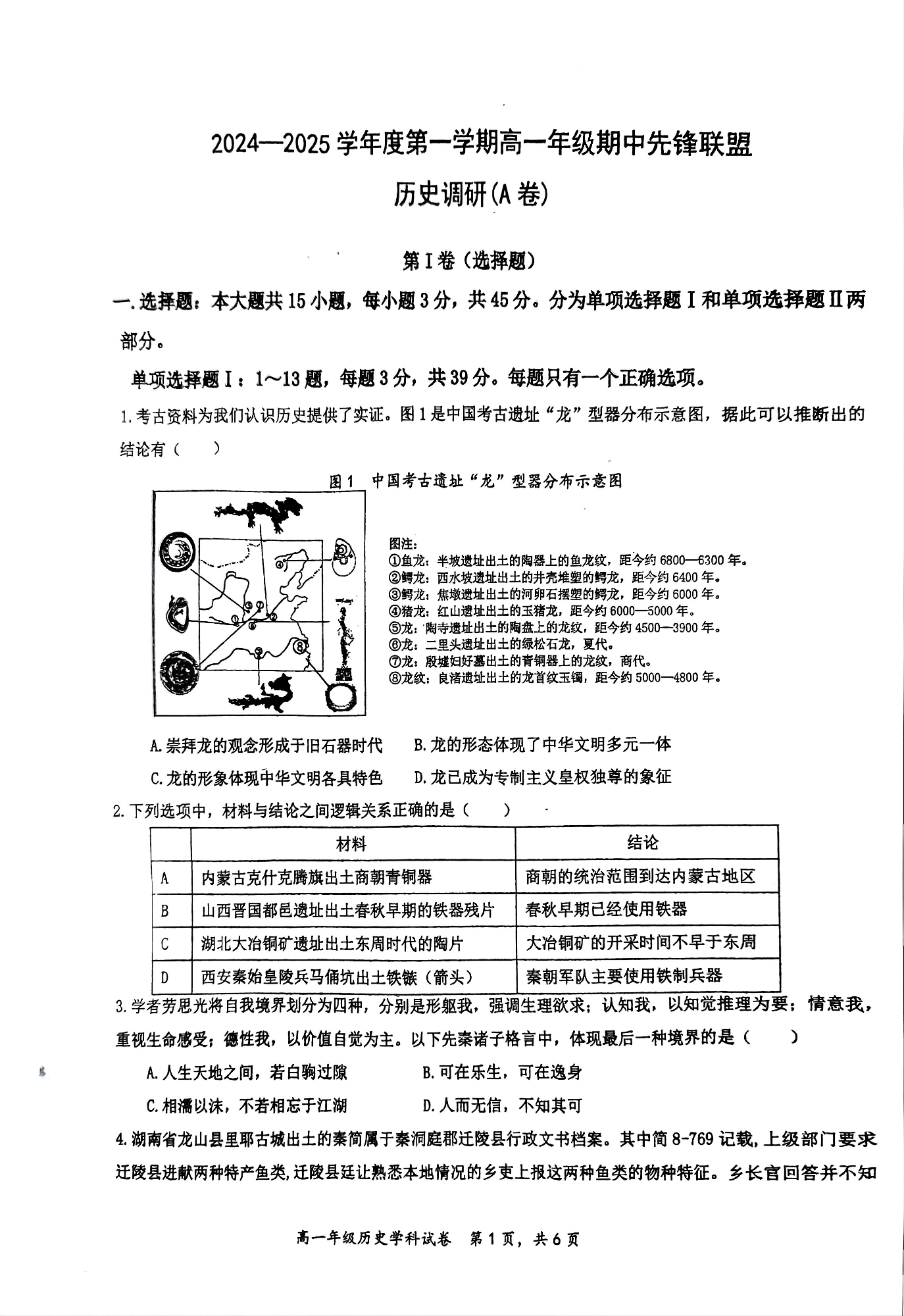 海南省先锋联盟2024-2025学年高一上学期11月期中调研试题历史