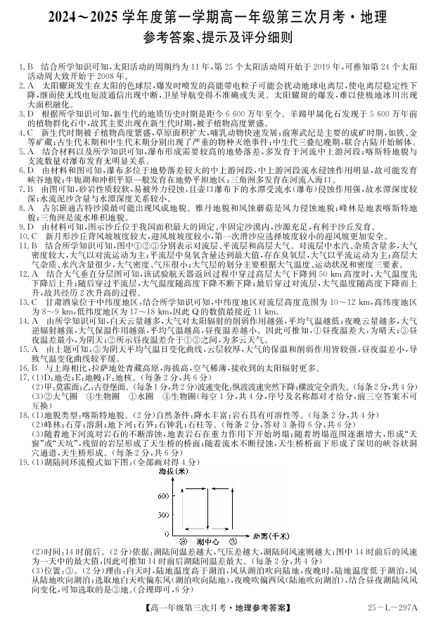 河北省2024-2025学年度第一学期高一年级第三次月考地理答案