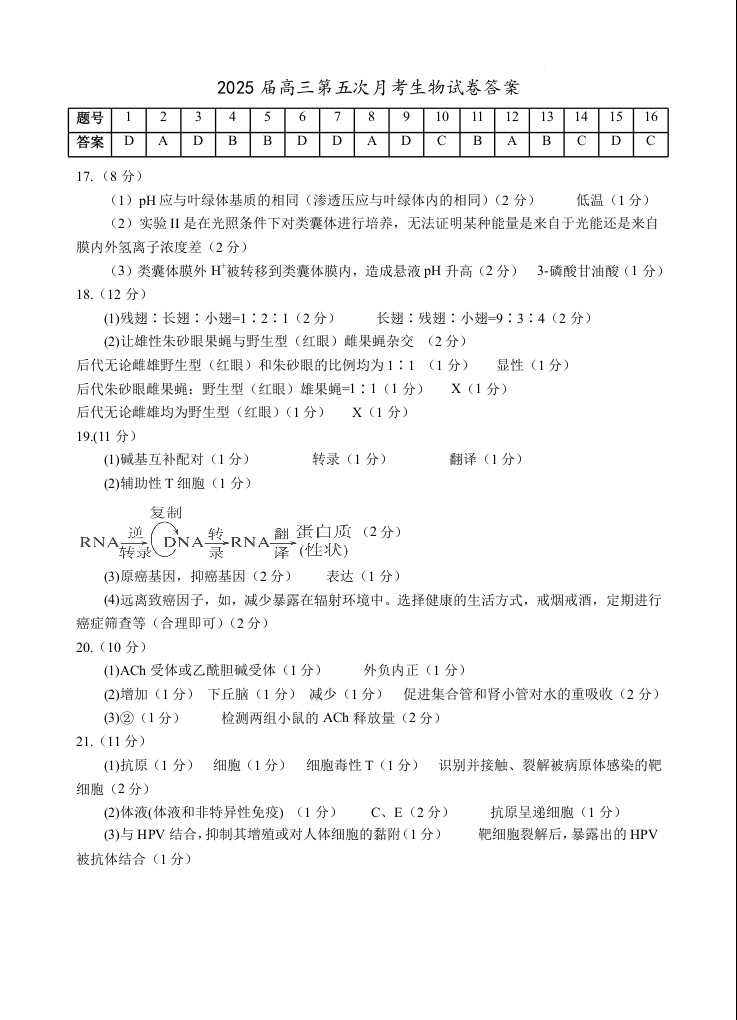 宁夏回族自治区银川一中2025届高三上学期第五次月考生物答案