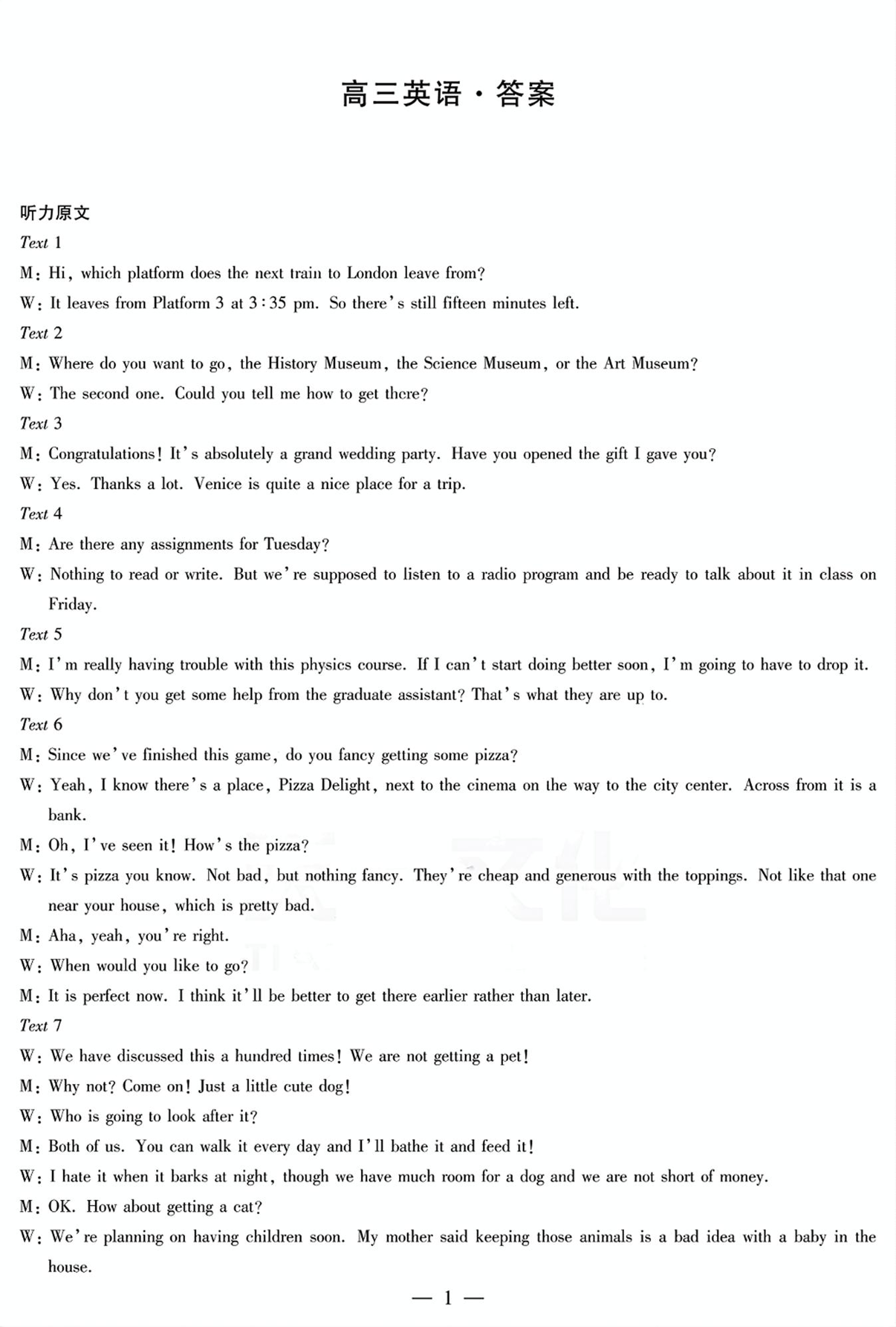 湖南省郴州市2024-2025学年高三上学期12月期末检测英语答案