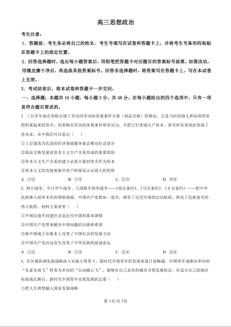 湖南省郴州市2024-2025学年高三上学期12月期末检测政治(原卷版)