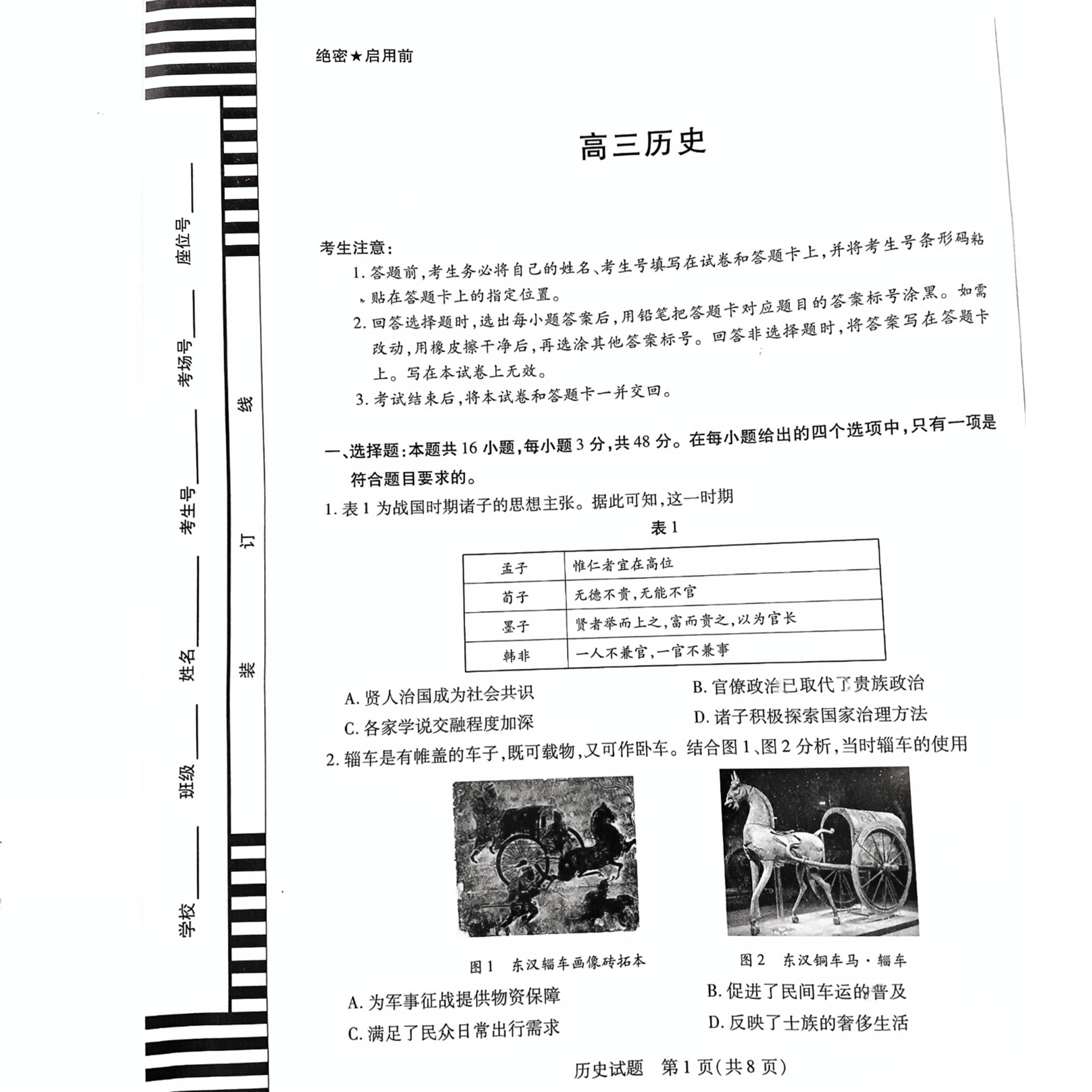 湖南省郴州市2024-2025学年高三上学期12月期末检测历史
