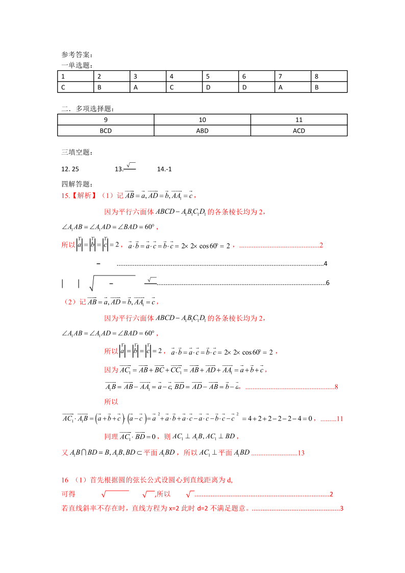 湖北省腾云联盟2024-2025学年高二上学期12月联考数学答案