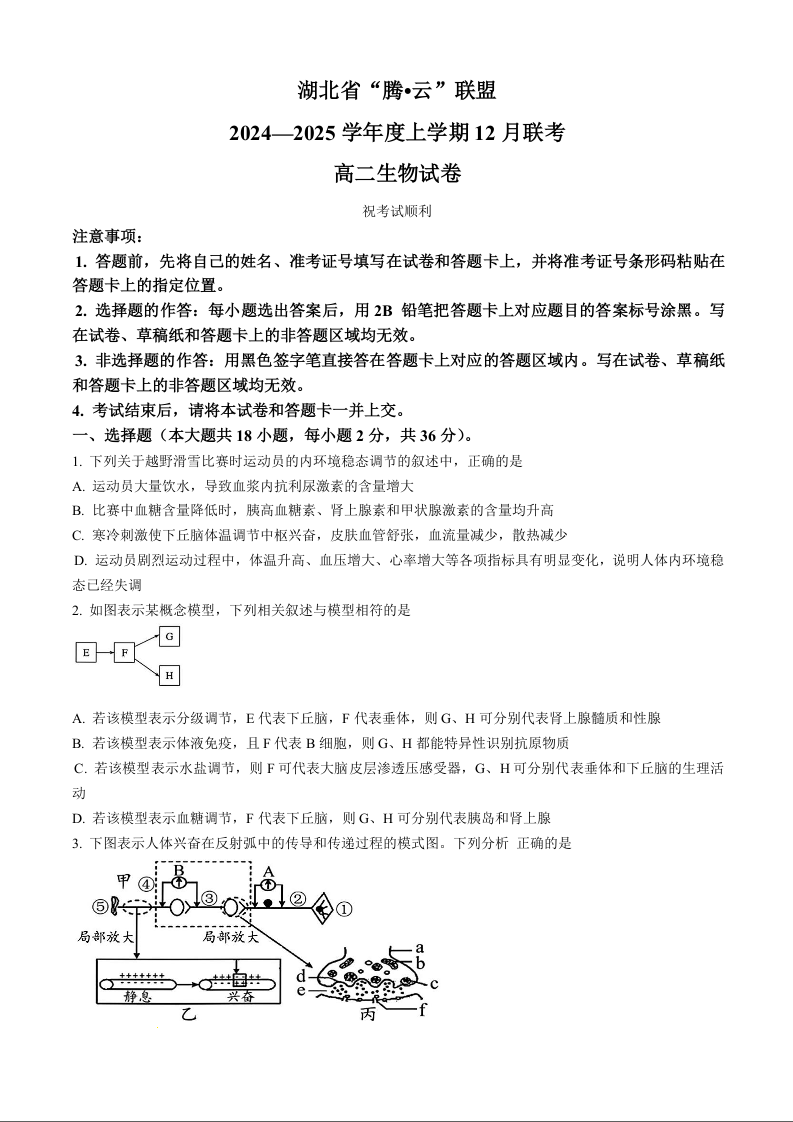 湖北省腾云联盟2024-2025学年高二上学期12月联考生物答案