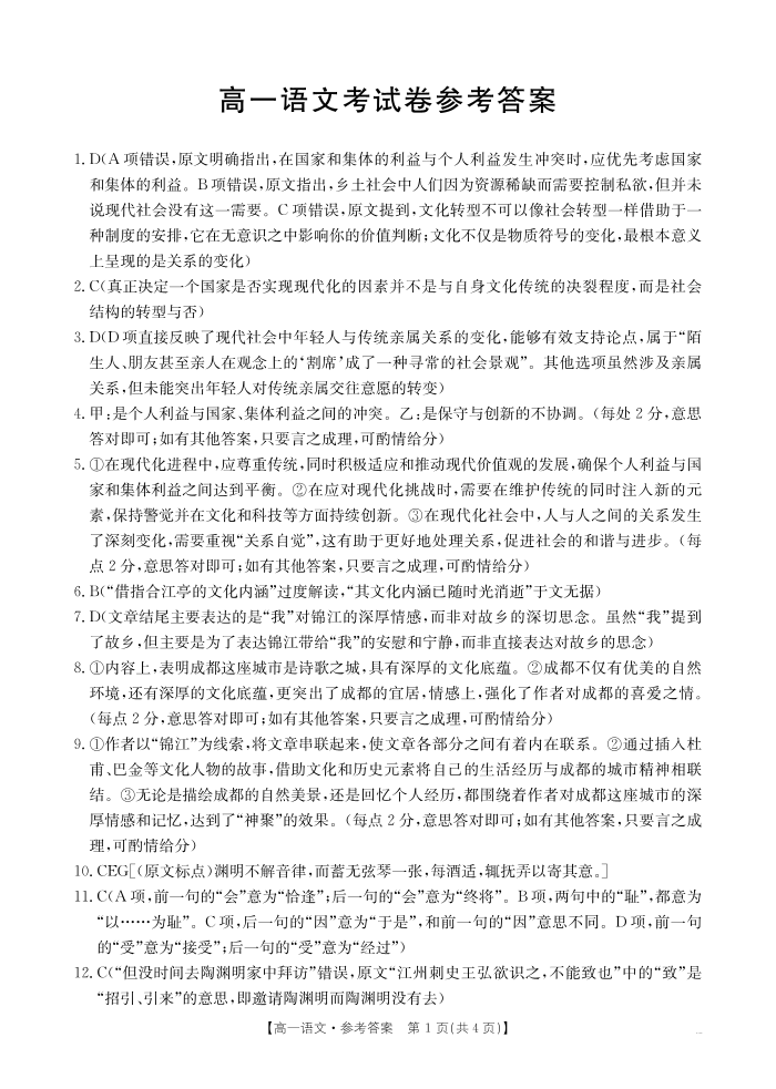云南省昆明市五华区2024-2025学年高一上学期12月月考语文答案