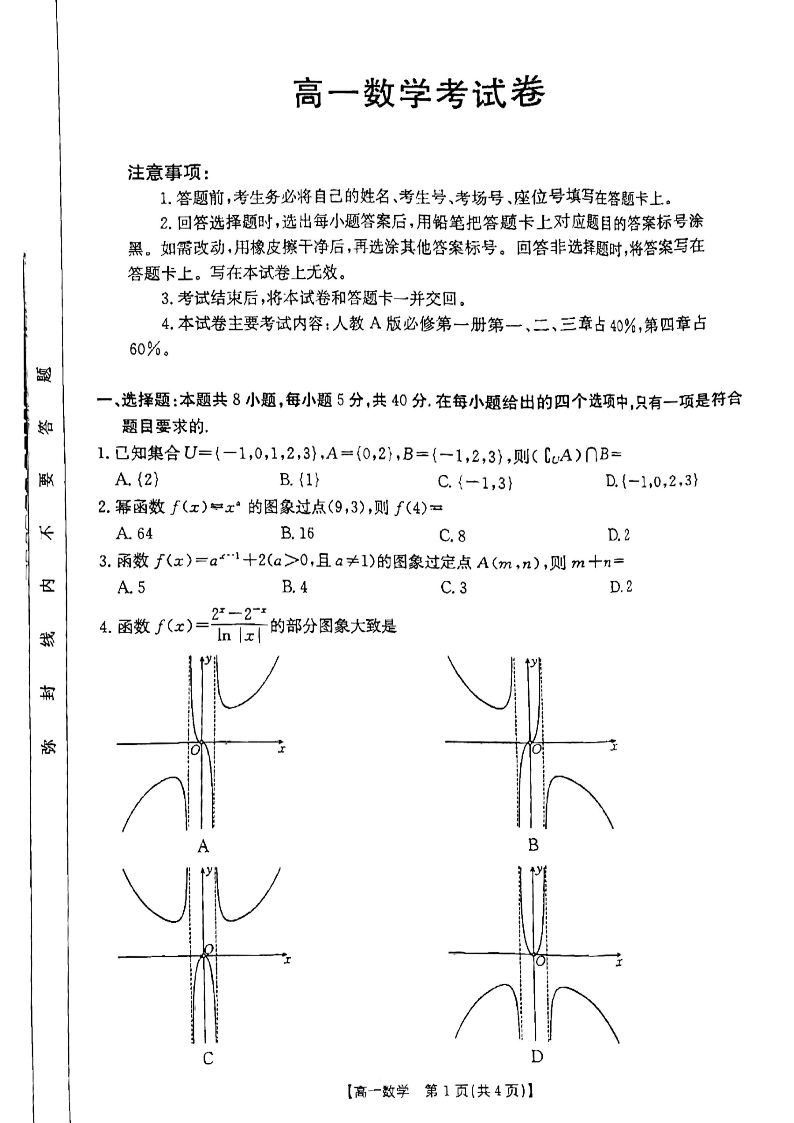 云南省昆明市五华区2024-2025学年高一上学期12月月考数学