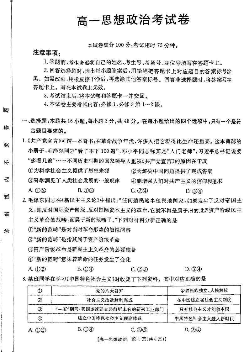 云南省昆明市五华区2024-2025学年高一上学期12月月考政治