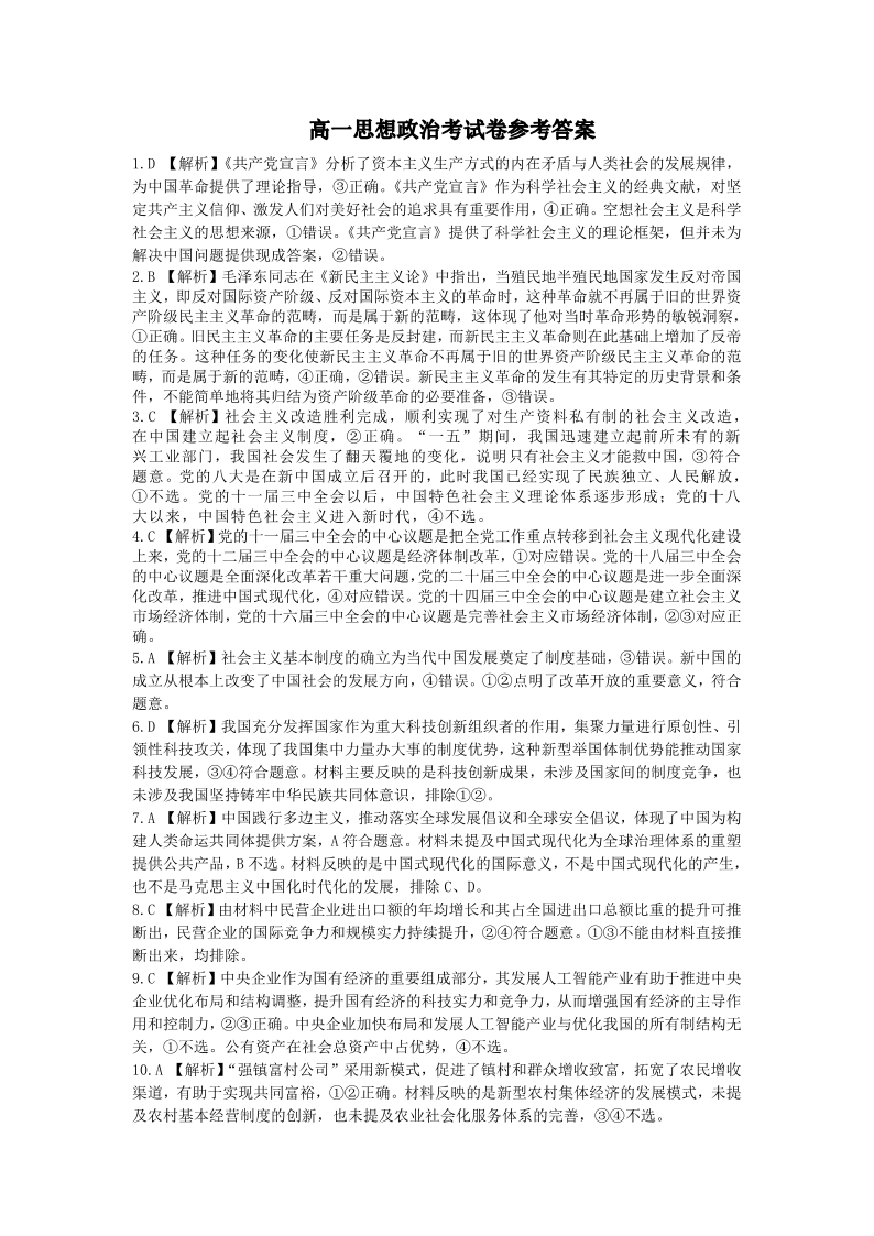 云南省昆明市五华区2024-2025学年高一上学期12月月考政治答案