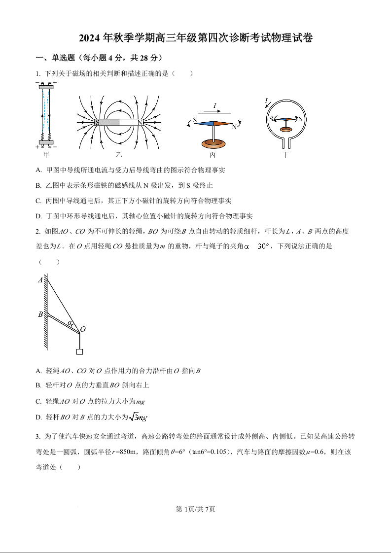 甘肃省平凉市一中等高中2025届高三上学期第四次阶段性考试物理(原卷版)