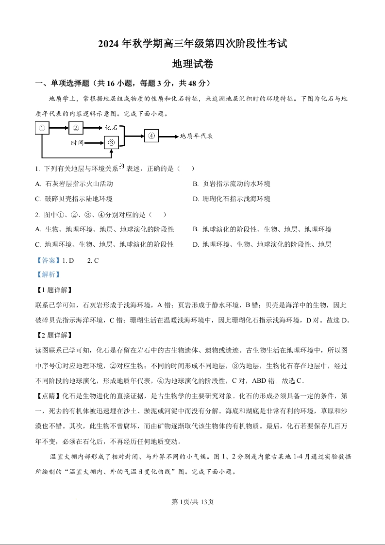 甘肃省平凉市一中等高中2025届高三上学期第四次阶段性考试地理(精品解析版)