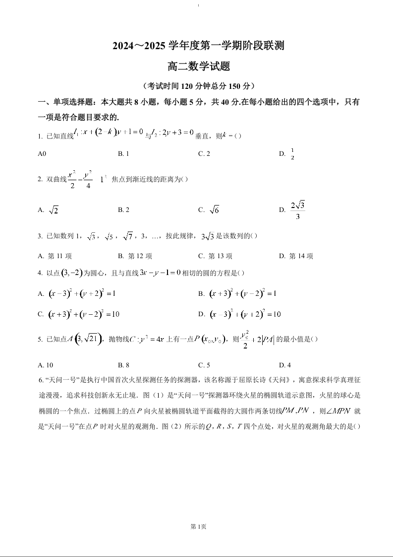 江苏省四市十一校联盟2024-2025学年高二上学期12月阶段联测数学+答案
