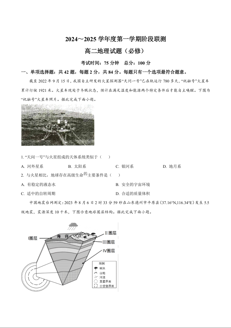 江苏省四市十一校联盟2024-2025学年高二上学期12月阶段联测地理+答案