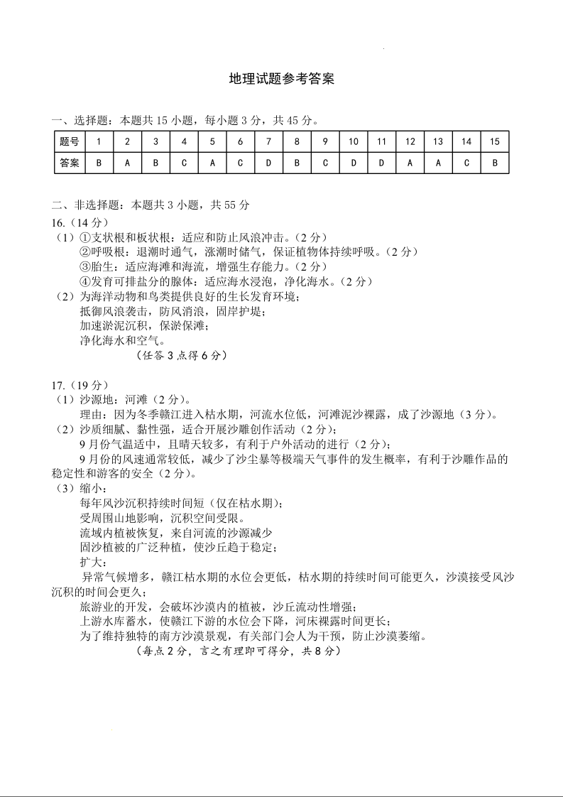 湖北省武汉市问津教育联合体2024-2025学年高一上学期12月联考地理答案