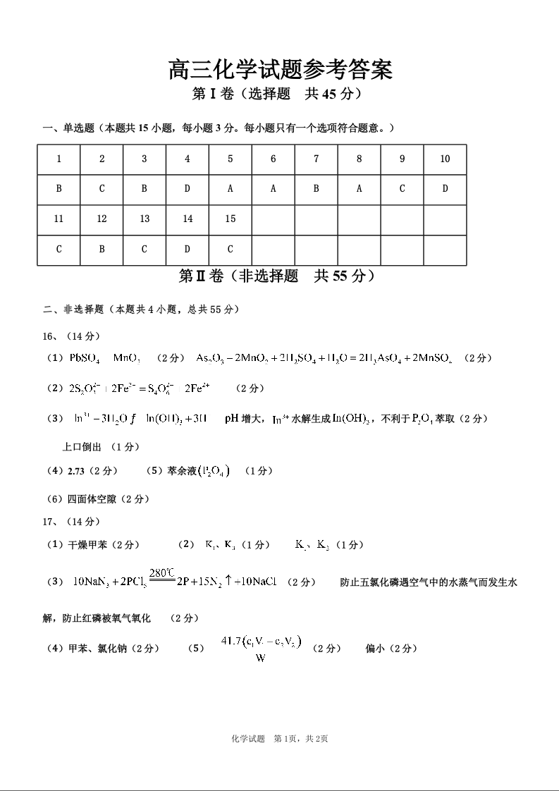 黑龙江省大庆中学2025届高三上学期第二次模拟考试化学答案
