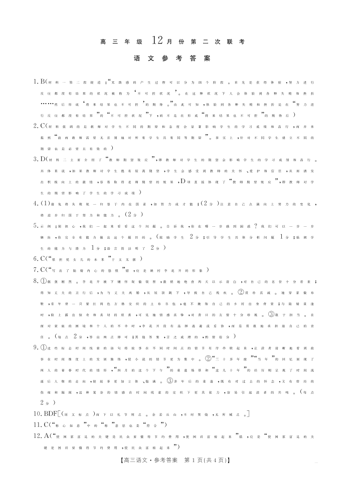 河北省邢台市2025届高三上学期第二次联考语文答案