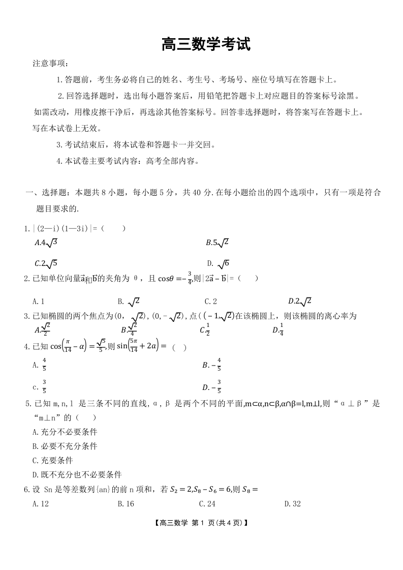 河北省邢台市2025届高三上学期第二次联考数学
