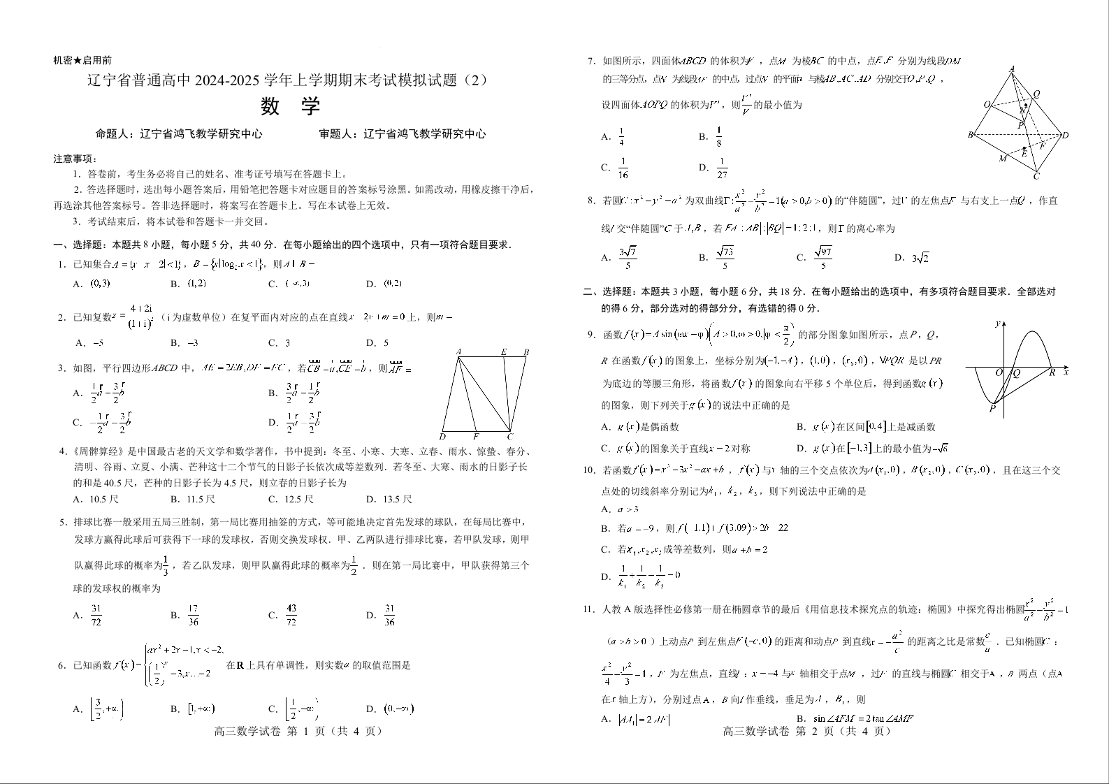 【文字版】辽宁省普通高中2024-2025学年高三上学期1月期末考试模拟数学(2)