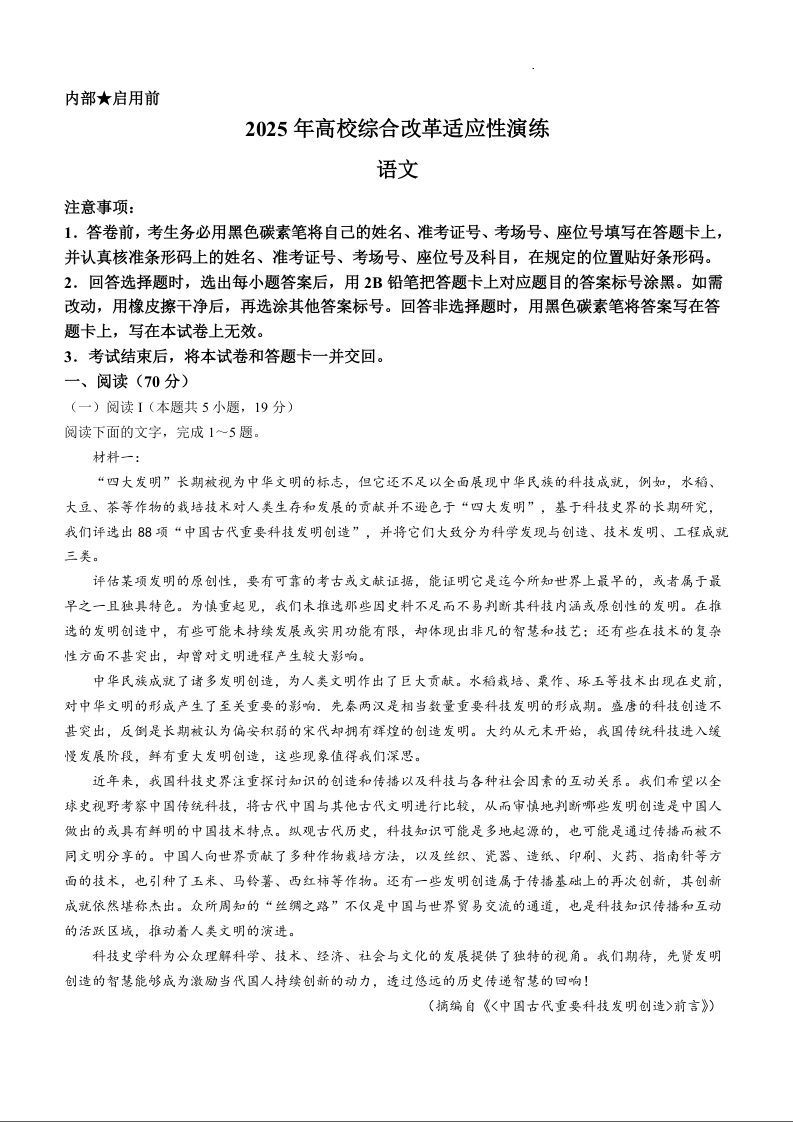 【八省联考】新八省联考2025年高考综合改革适应性演练语文
