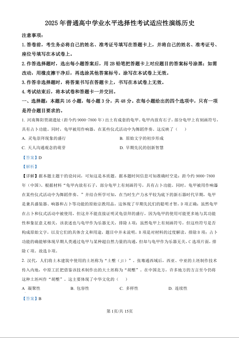 【陕西、山西、宁夏、青海】新八省联考2025年高考综合改革适应性演练历史(精品解析版)