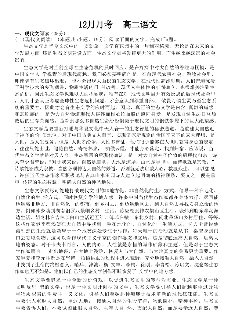 河北省沧州市六校联考2024-2025学年高二上学期12月月考语文+答案
