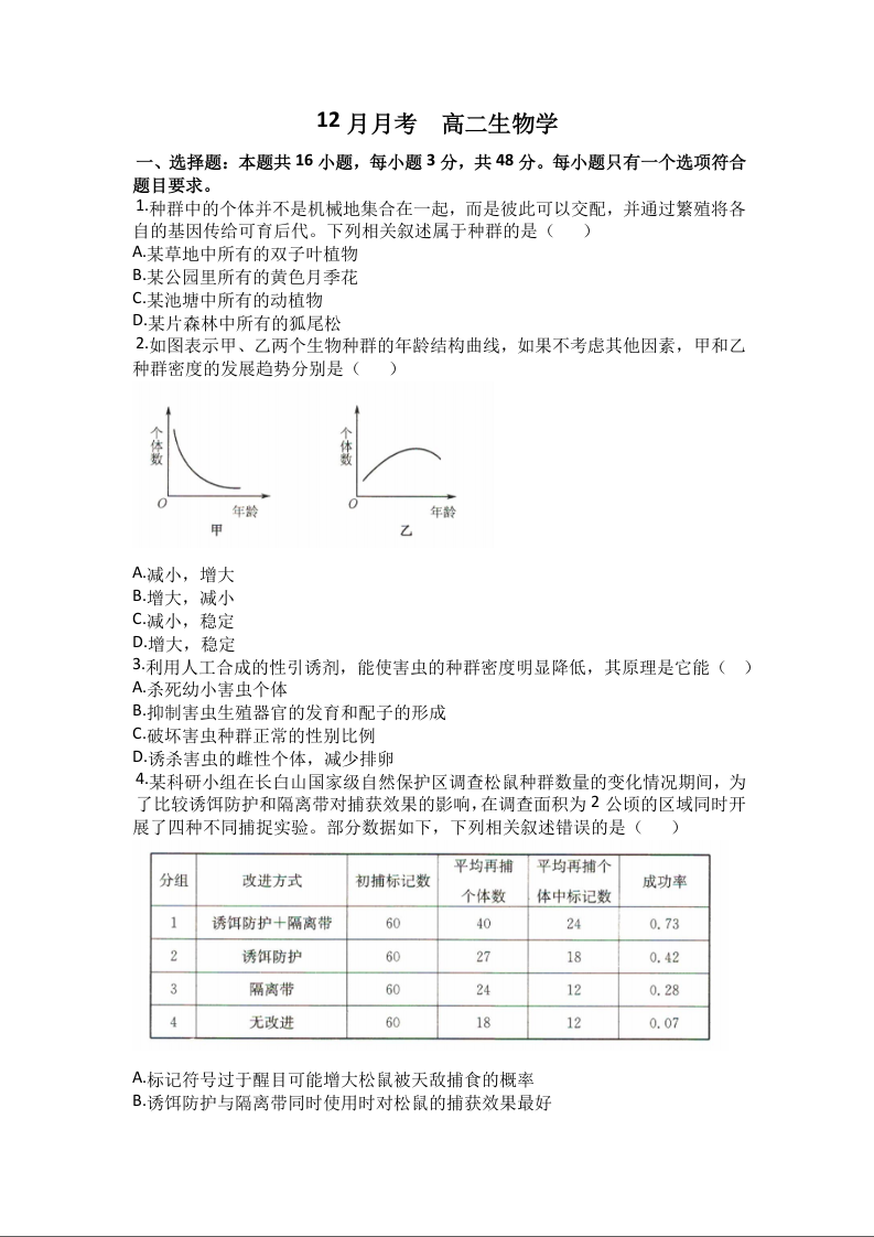 河北省沧州市六校联考2024-2025学年高二上学期12月月考生物+答案