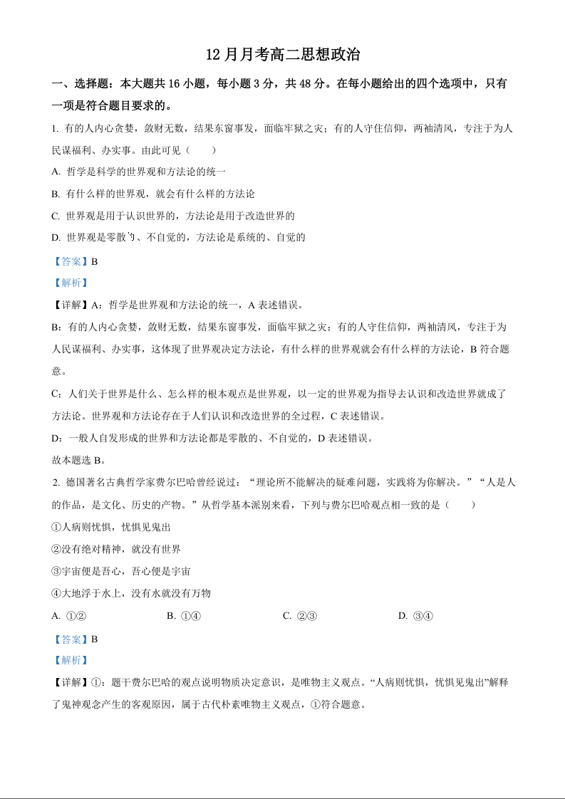 河北省沧州市六校联考2024-2025学年高二上学期12月月考政治(解析版)