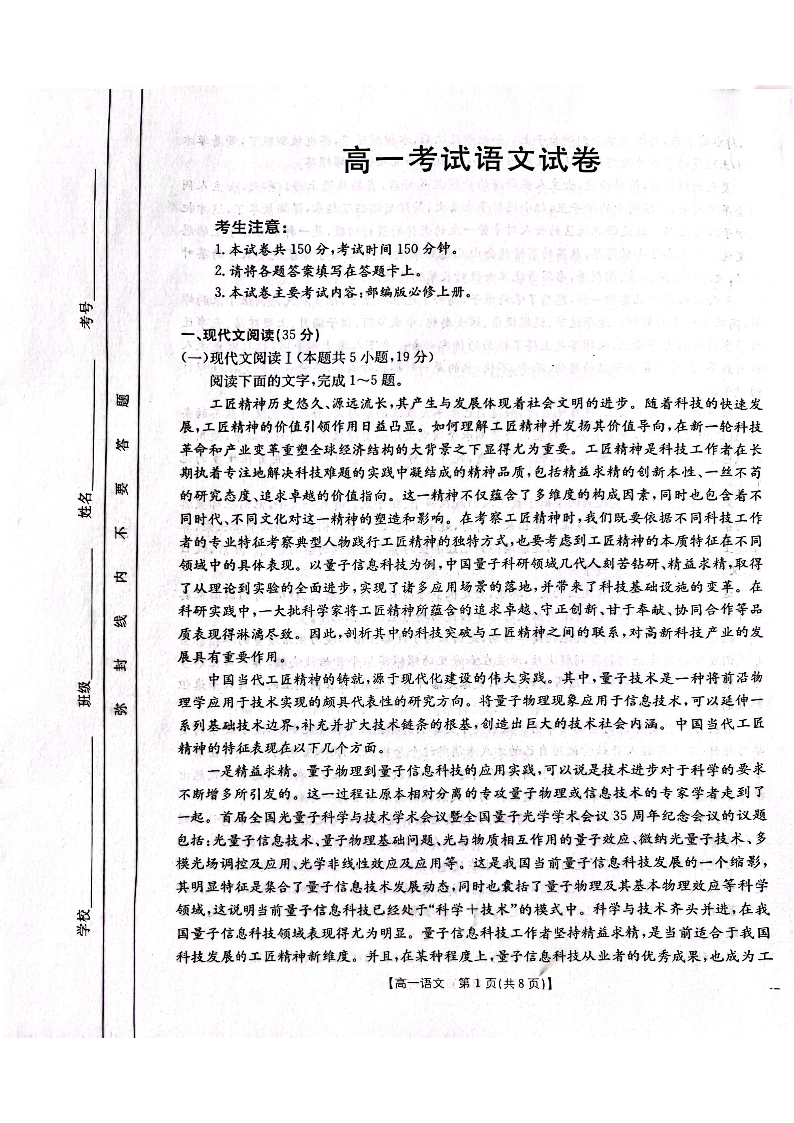 辽宁省辽阳市2024-2025学年高一上学期期末考试语文