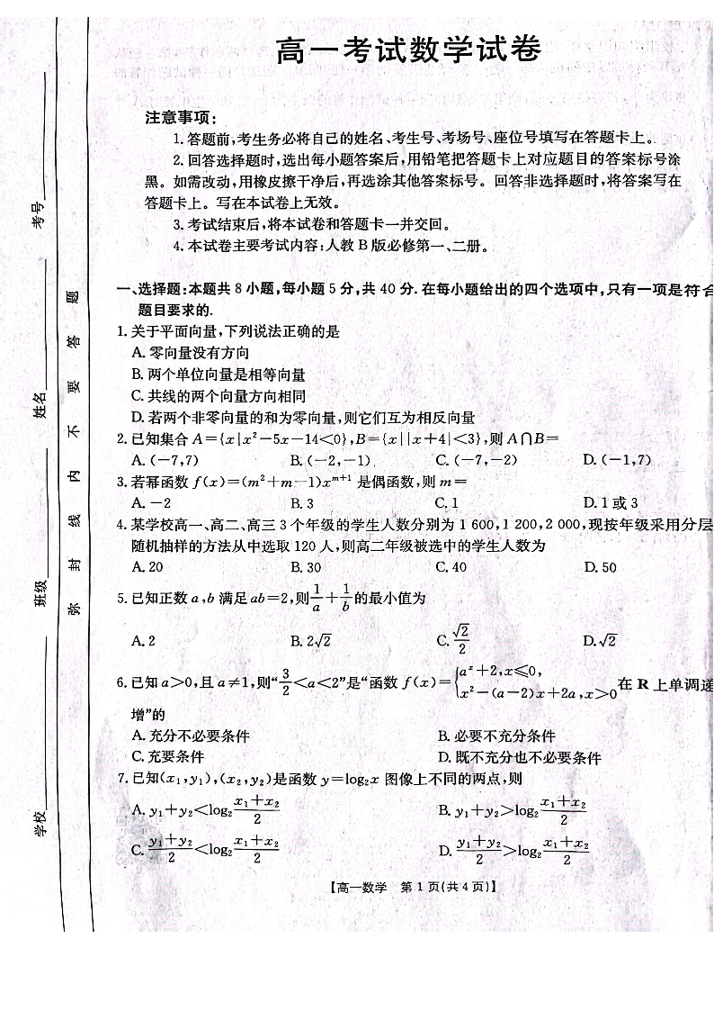 辽宁省辽阳市2024-2025学年高一上学期期末考试数学